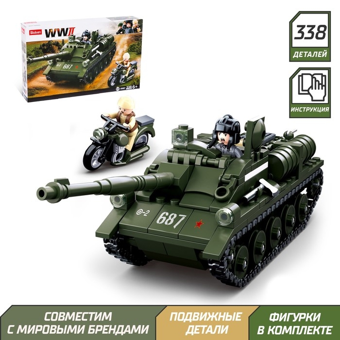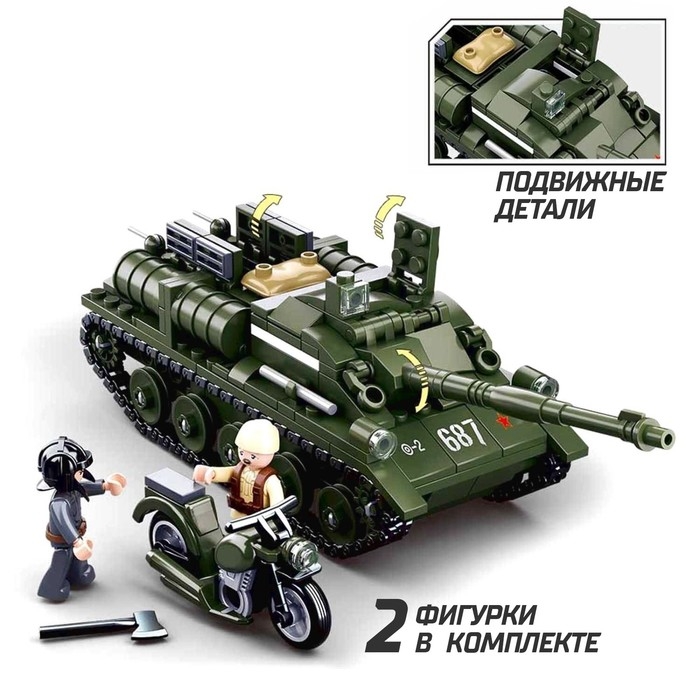 Конструктор Армия ВОВ «Танк ПТ-САУ 100», 338 деталей
