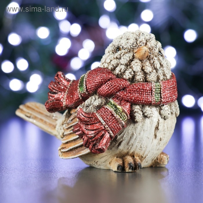 Фигура "Воробей в шарфике" белый 9х12х8,5см
