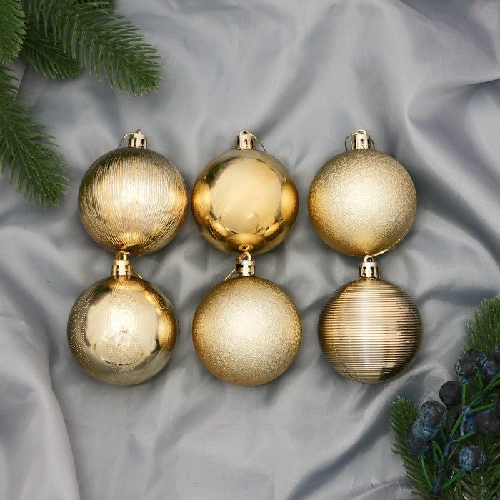 Набор шаров пластик d-6 см, 25 шт "Ассорти - ажур" золото