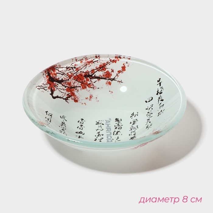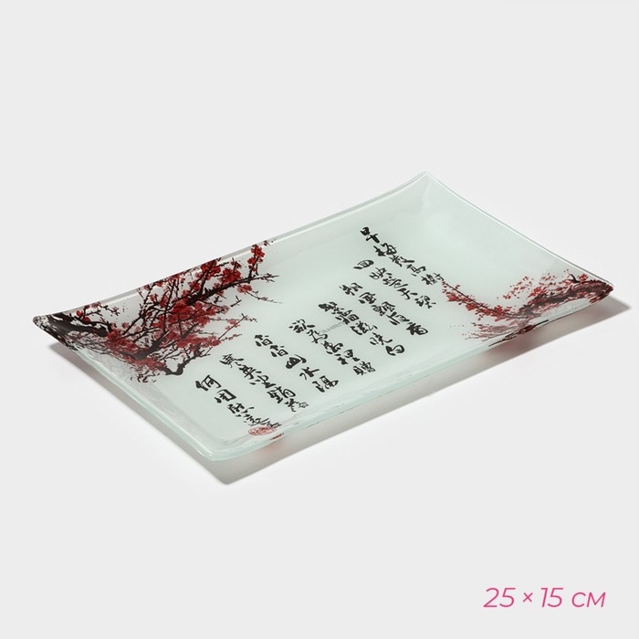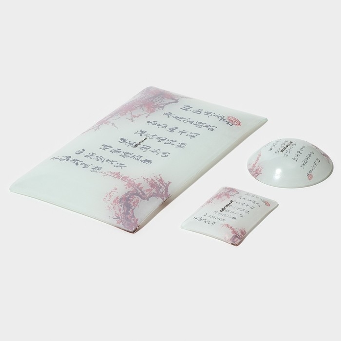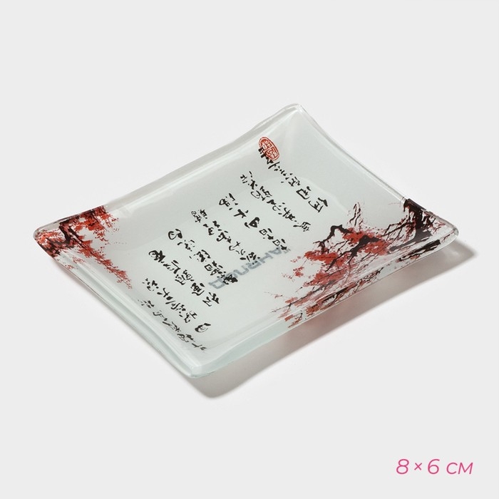 Набор для суши из стекла Доляна «Сакура», 3 предмета: соусники 8×2 см, 8×6 см, подставка 25×15×2 см