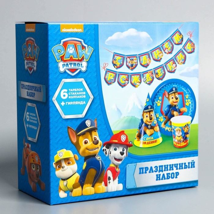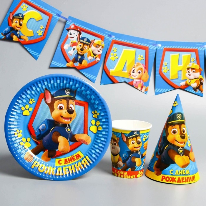 Набор бумажной посуды, на 6 персон "С днем рождения!", Щенячий патруль