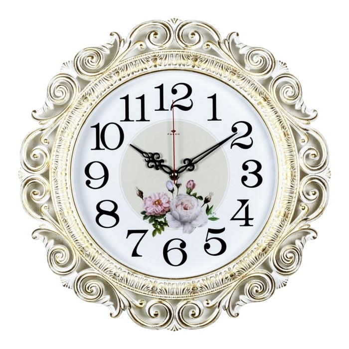 Часы настенные, интерьерные: Цветы, "Хостон", бесшумные, d-40.5 см, белое золото