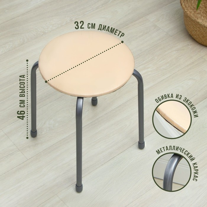 Табурет круглый «Эконом», 4 опоры, ДСП, цвет слоновая кость