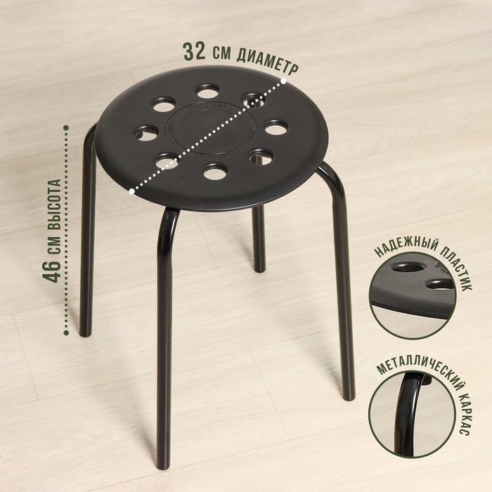 Табурет с пластмассовым сиденьем, цвет черный