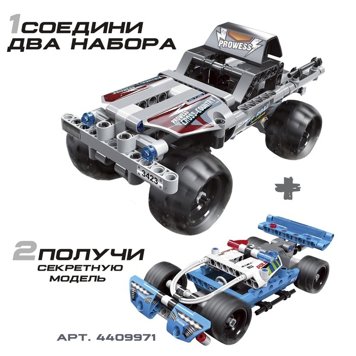 Соберите свою гоночную машинку с инерционным механизмом! Этот конструктор создан для умелых ручек и любознательных умов. Секрет: соедините эту модель с другой и получите эксклюзивную третью версию машинки.