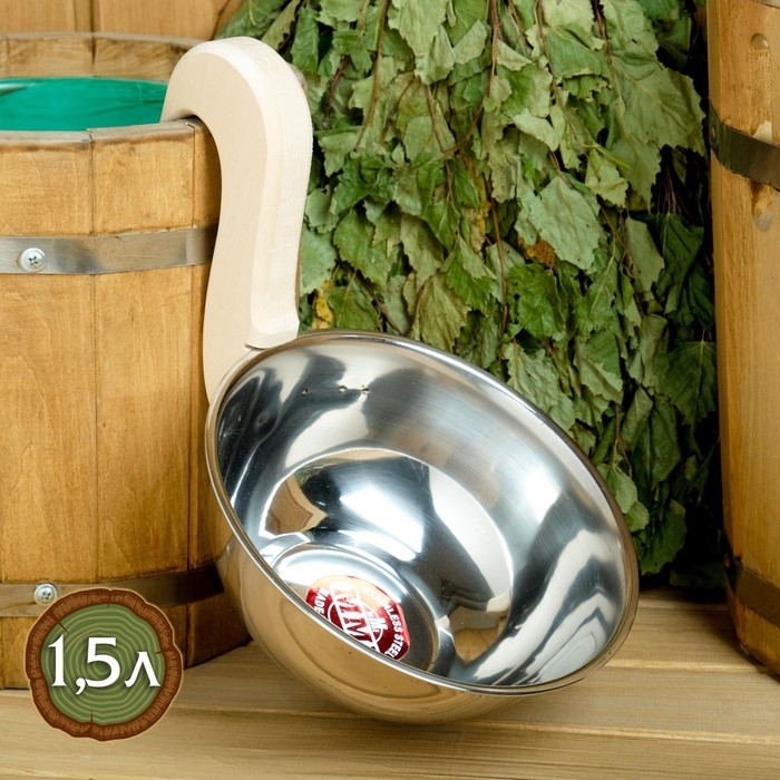 Ковш для бани из нержавеющей стали, 1.5л, 31 см, с ручкой, "Добропаровъ"