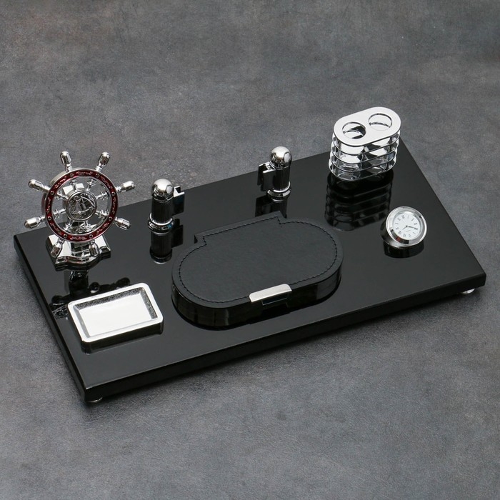 Набор настольный 6в1 (часы, блок д/ бумаги,каранд-ца, визитица,штурвал,скреп-ца ) 40*20*15см