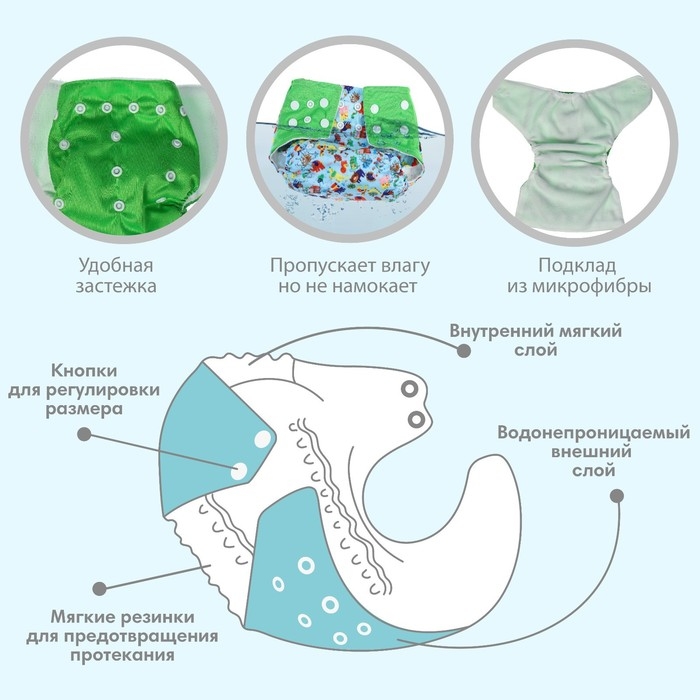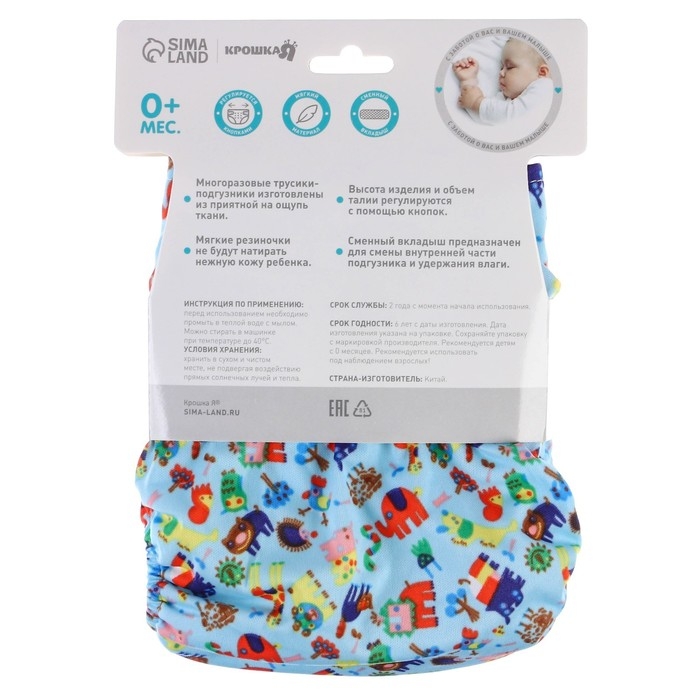 Многоразовый подгузник+ 1 вкладыш в комплекте «Зверушки»