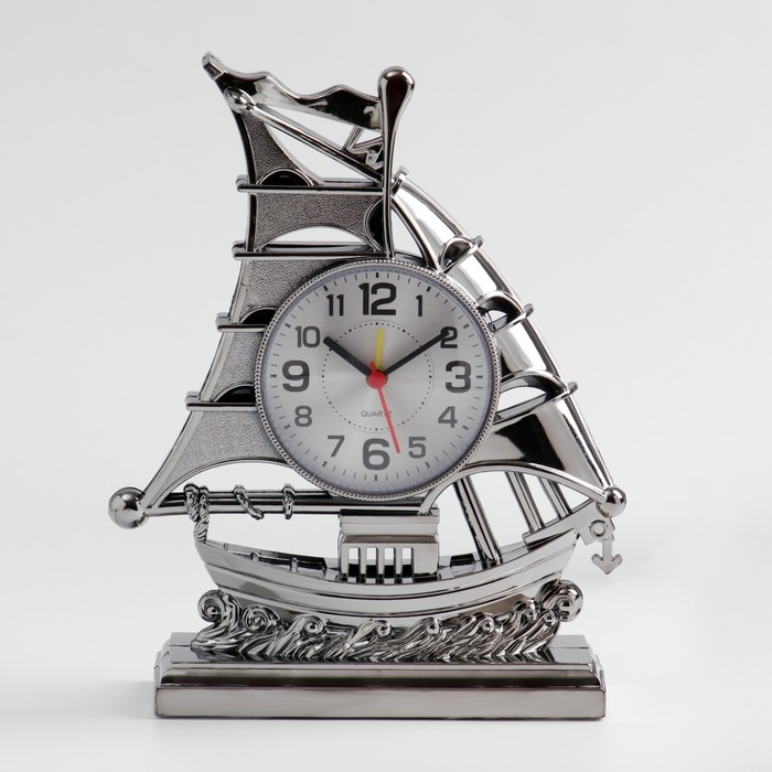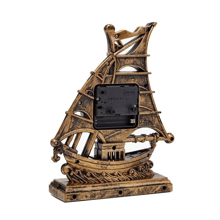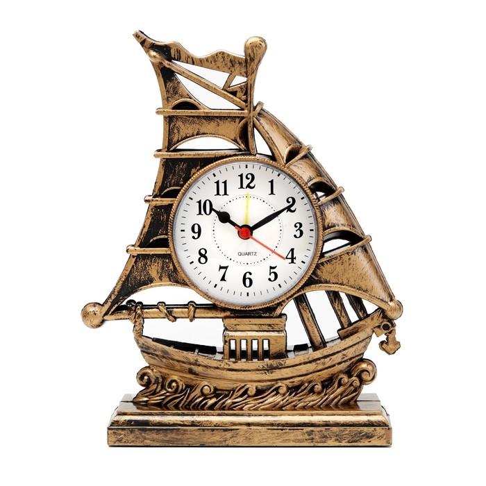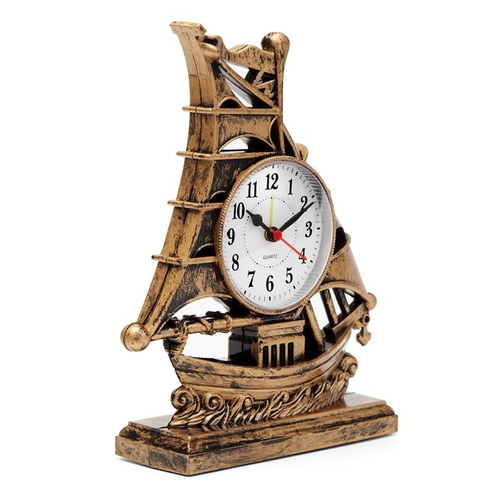 Часы с будильником представлены в оригинальном дизайне в форме корабля с парусами, они отлично впишутся в интерьер. Интерьерные часы станут прекрасным декором для дома и дачи, их можно поставить как на прикроватную тумбочку в спальне, детской комнате, гостиной так и на стол или на комод в зале, холле или на кухне. Будильник настольный имеет кварцевый механизм, который гарантирует высокую точность хода. Часы настольные обладают громким будильником, ребенку и вам будет комфортно просыпаться, на работу и в школу. Будильник на батарейках не требует частой замены батареек благодаря экономичному механизму.