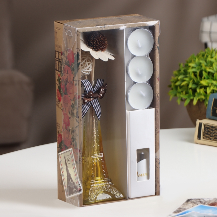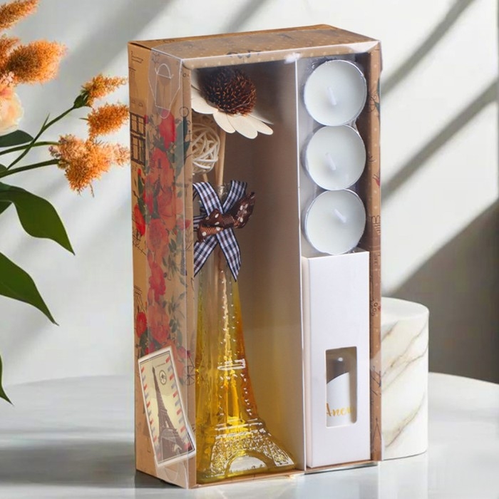 Ощутите волшебство Парижа прямо у себя дома с нашим уникальным набором в стиле Эйфелевой башни. Этот диффузор, выполненный в форме изящного символа Франции, не только наполнит ваш дом уютом, но и придаст ему неповторимый шарм. В комплекте с диффузором вы найдете чайные свечи, создающие приглушенное освещение и добавляющие нотки романтики в атмосферу, а также аромамасло, которое наполнит помещение нежным, умиротворяющим ароматом. Разгрузите свой день и погрузитесь в атмосферу спокойствия и расслабления с нашим набором, который привнесет в вашу жизнь частичку волшебства Парижа.