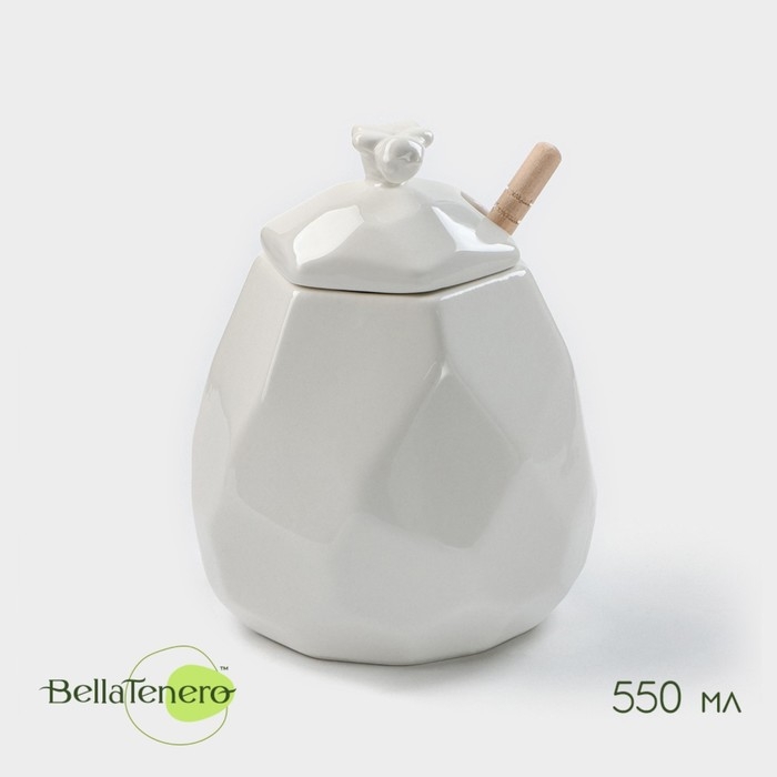 Ёмкость фарфоровая для мёда с ложкой BellaTenero «Пчёлка», 550 мл, цвет белый