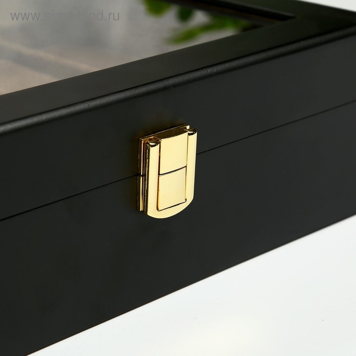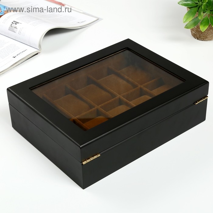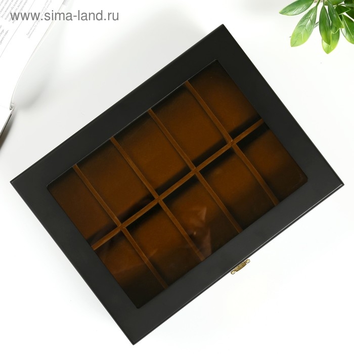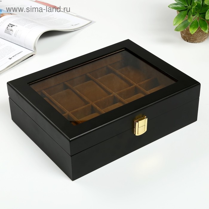 Шкатулка дерево под часы 10 отделений "Чёрная матовая" 8х26х20 см