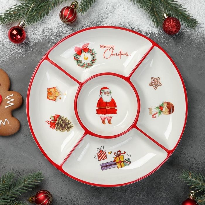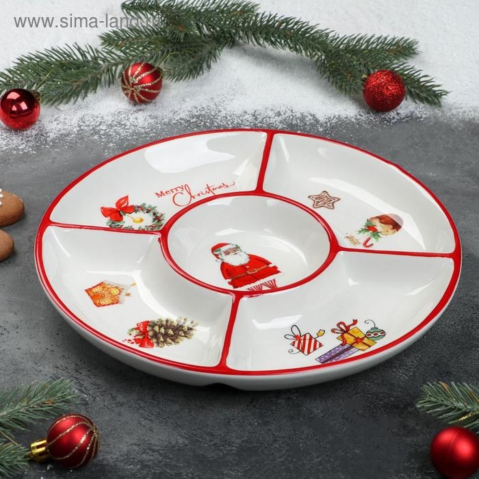 Менажница 5 ячеек Доляна «Новый Год», d=25,5 см, цвет белый