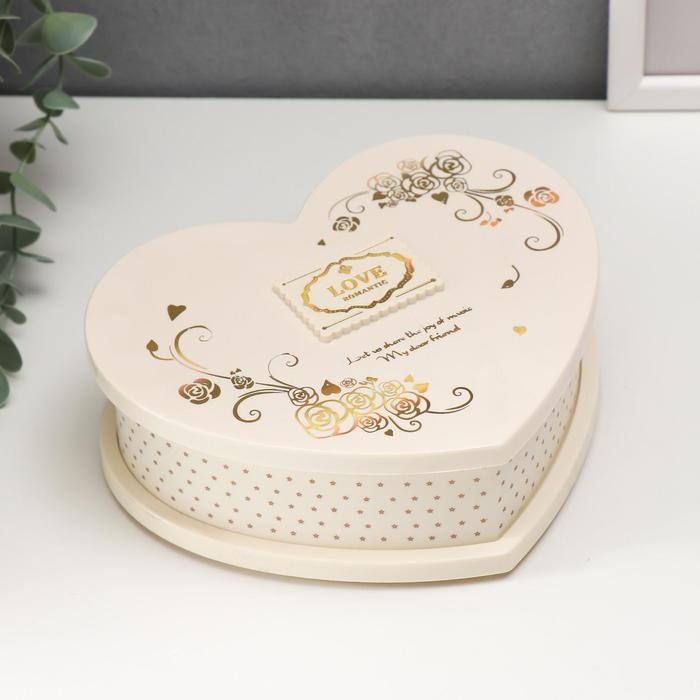 Шкатулка музыкальная механическая "Сердце с золотыми узорами" 6,5х19,5х16 см