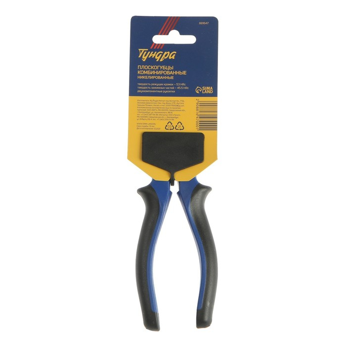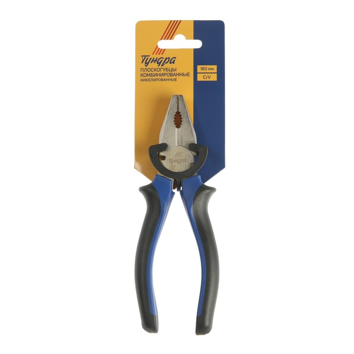 Плоскогубцы комбинированные ТУНДРА, CrV, никелированные, двухкомпонентные рукоятки, 160 мм
