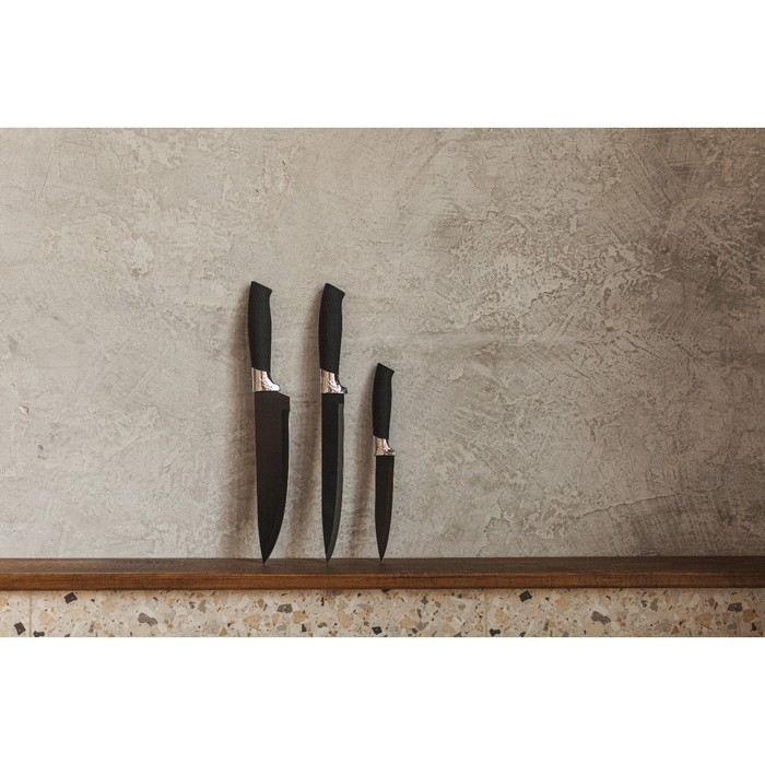 Набор кухонных ножей «Энеолит», 3 предмета: лезвие 8,5 см, 15 см, 17 см, цвет чёрный