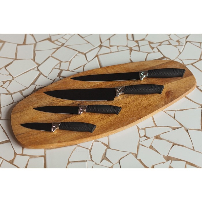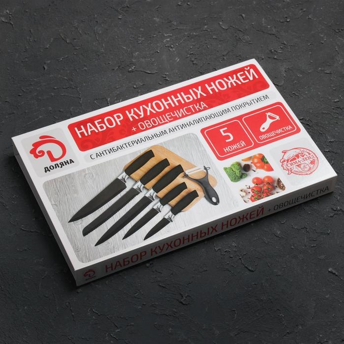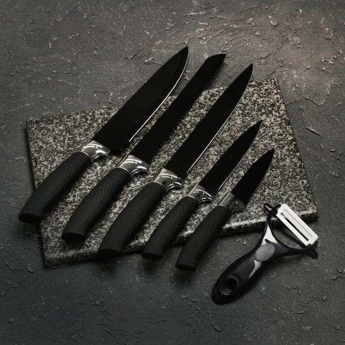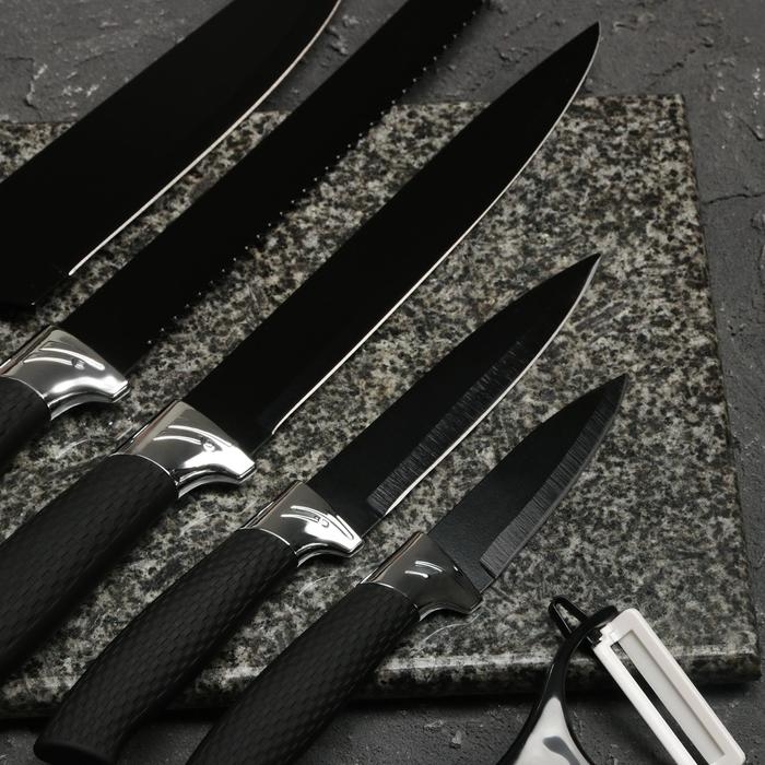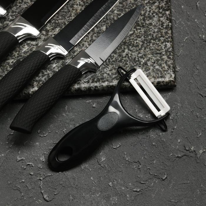 Набор кухонных принадлежностей Доляна «Супер-блек», 6 предметов: ножи 19 см, 23 см, 32 см, 32 см, керамическая овощечистка, 32×4 см, цвет чёрный