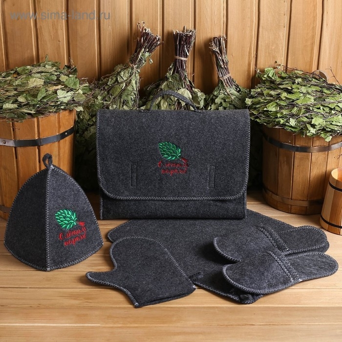 Набор банный портфель 5 предметов "С Лёгким паром, с веником", серый
