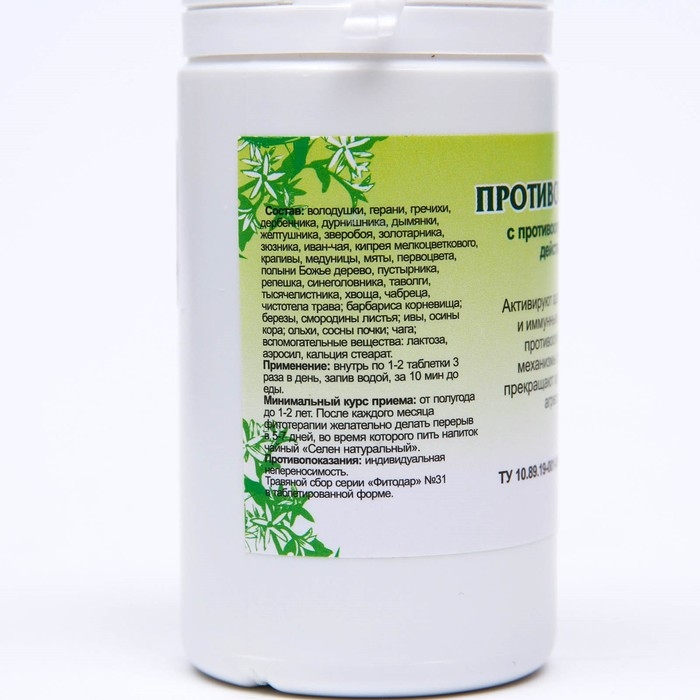 Состав: астрагала, болиголова, будры, володушки, герани, дербенника, донника, дымянки, золотарника канадского, зюзника, копеечника альпийского, медуницы, чистотела трава, аконита, барбариса, норичника, пиона корни, ели хвоя, осины кора, березы почки, березы, омелы листья, чага, трутовик, вспомогательные вещества лактоза, аэросил, кальция стеарат.