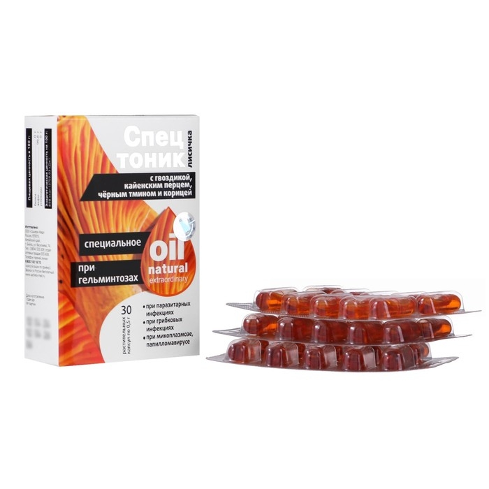 Масло экстраординарное натуральное "Спецтоник" При гельминтозах в капсулах, №30*0,5 г