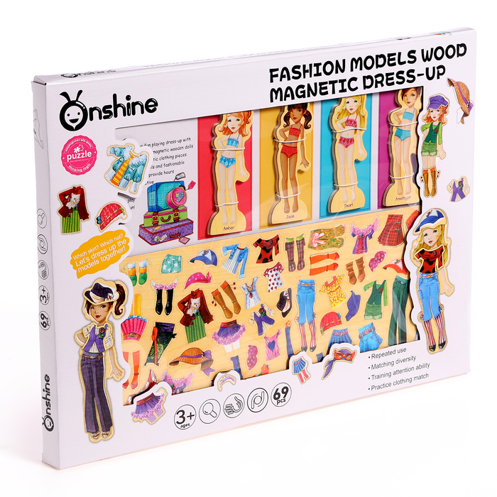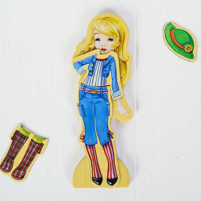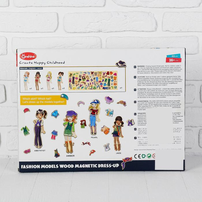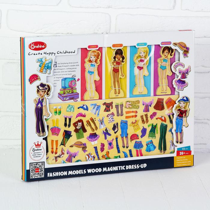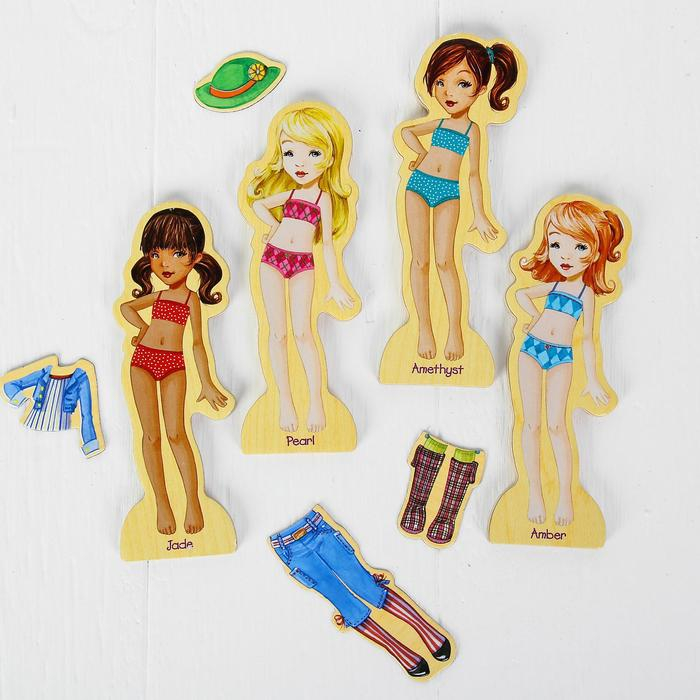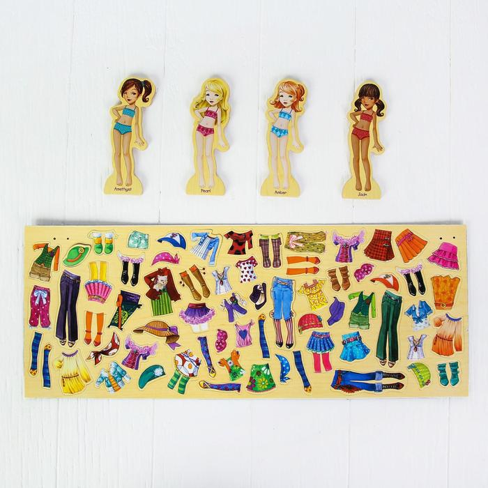 Игра на магнитах «Модные девчонки», 63 элемента одежды + 4 куклы