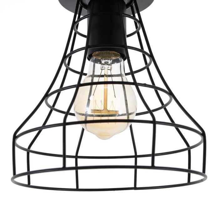 Светильник потолочный «Конти» выполнен в стиле лофт. Качественный металл окрашен в чёрный свет. Идеально будет смотреться в компании нескольких одинаковых или подобных по стилю светильников.