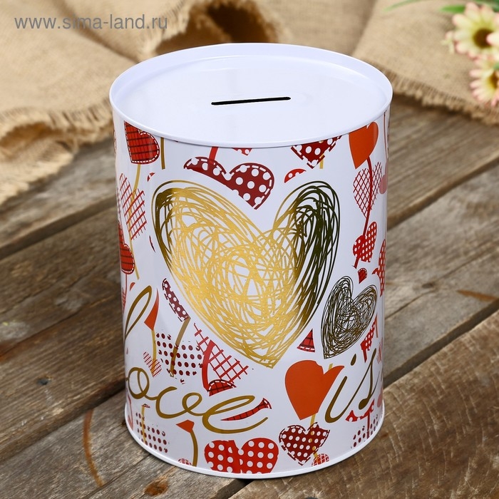 Копилка металл банка "Любовь" с золотом МИКС 16х12х12 см