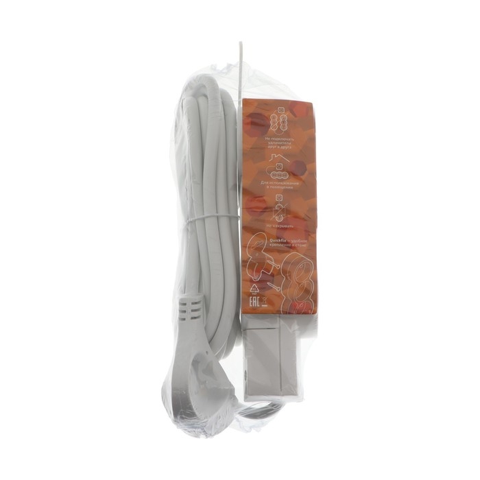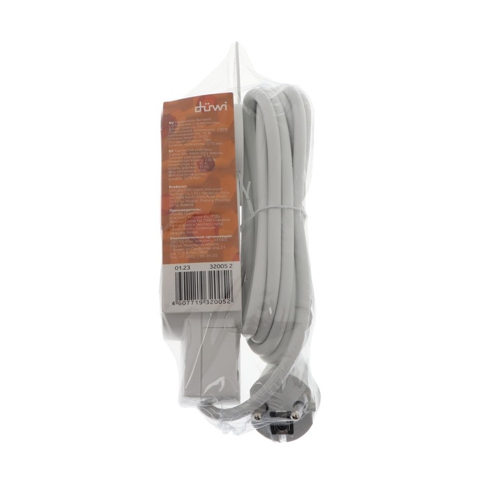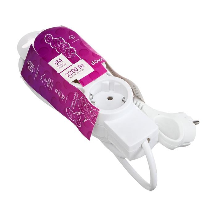 Удлинитель Duwi, 3 розетки, 3 м, 10 А, 2200 Вт, ПВС 3х0.75 мм2, с з/к, белый