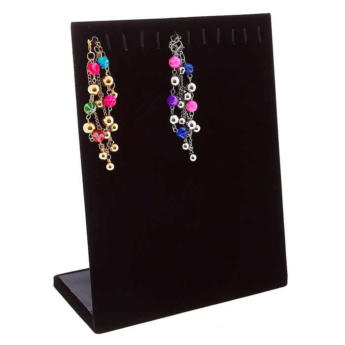Подставка для кулонов, цепочек, браслетов, 12 крючков 20×9×25,5 см, бархатная, цвет чёрный