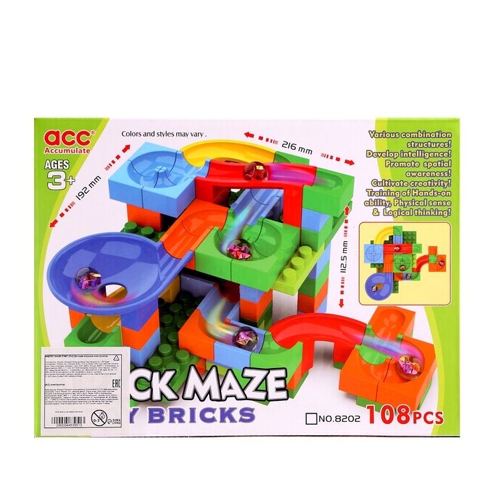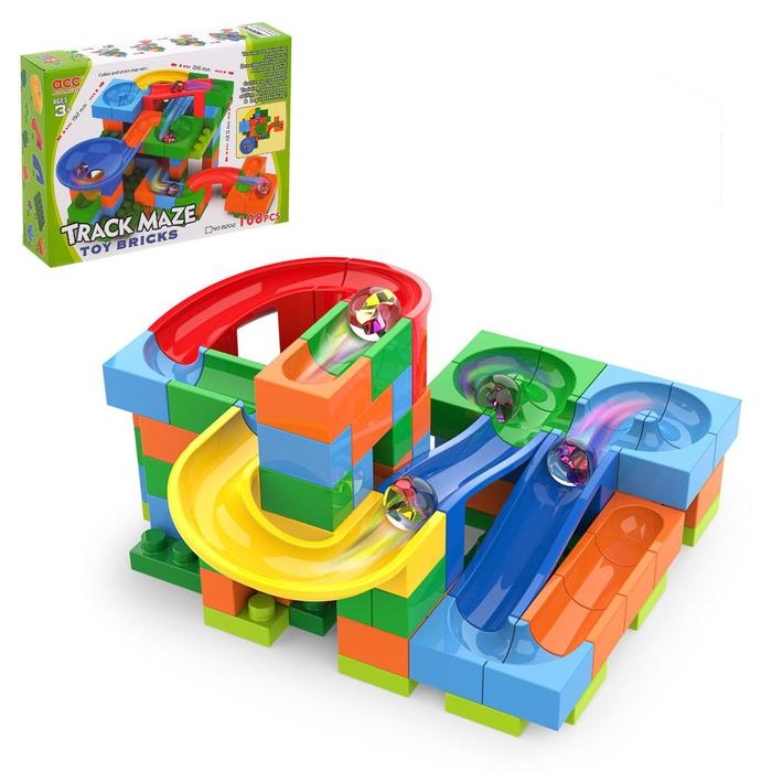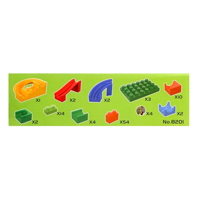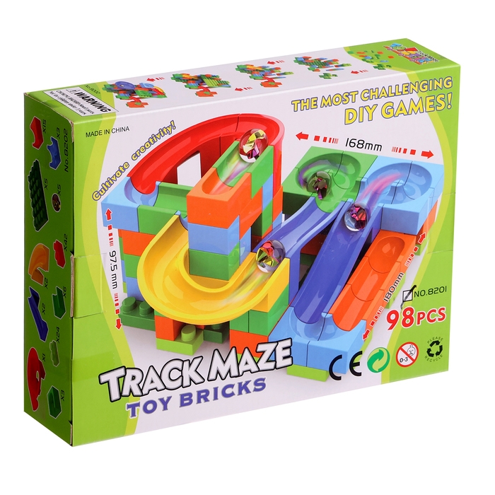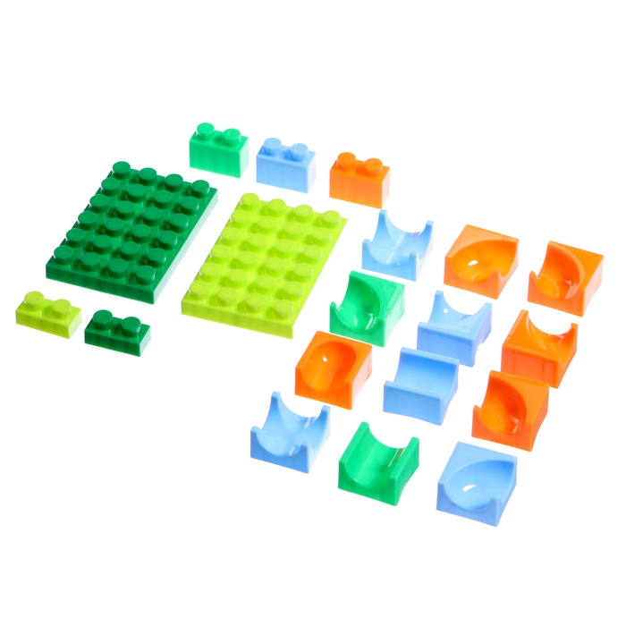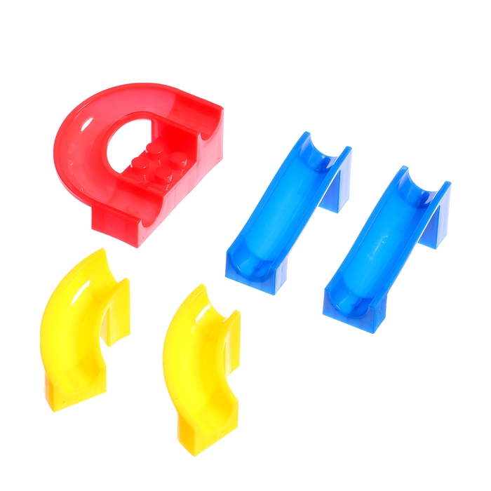 Набор состоит блочных элементов, разноцветных мостиков и извилистых дорожек. Малыш без труда соорудит трассу любой длины и сложности и будет следить за перемещениями шариков.