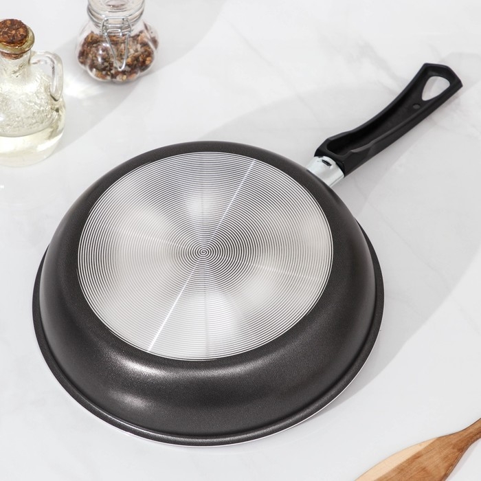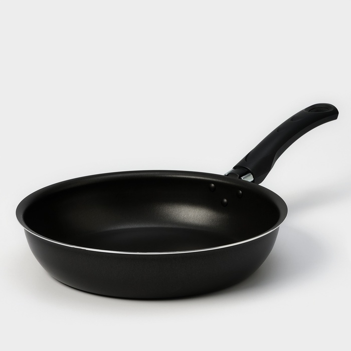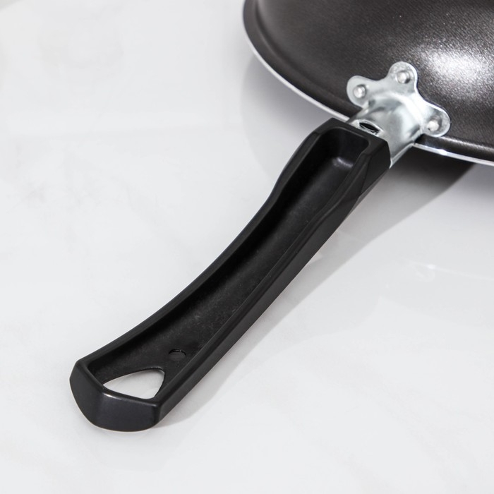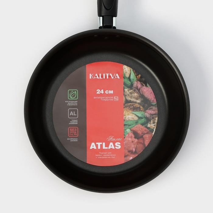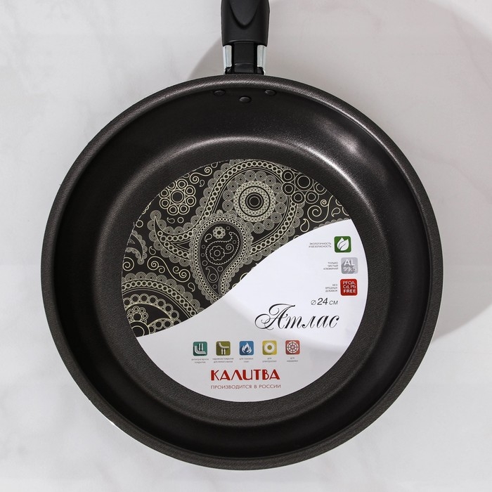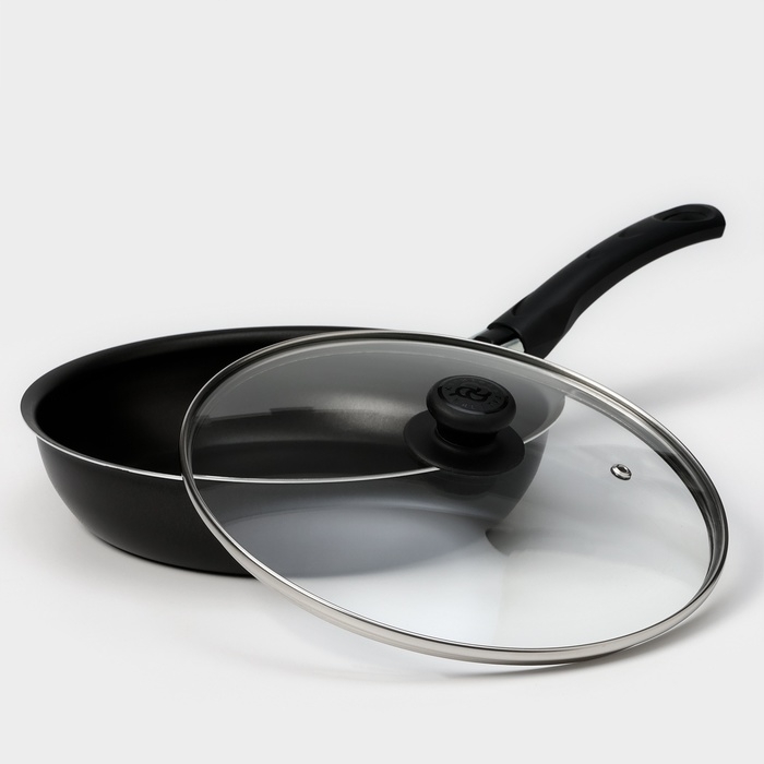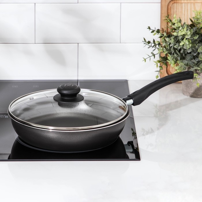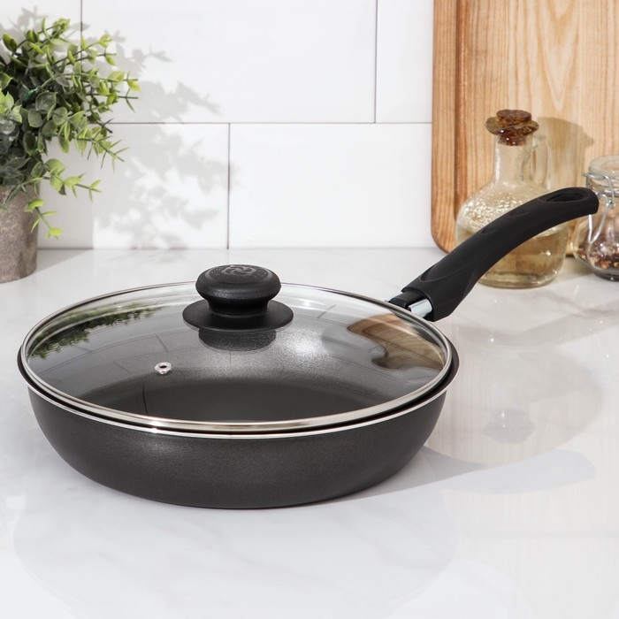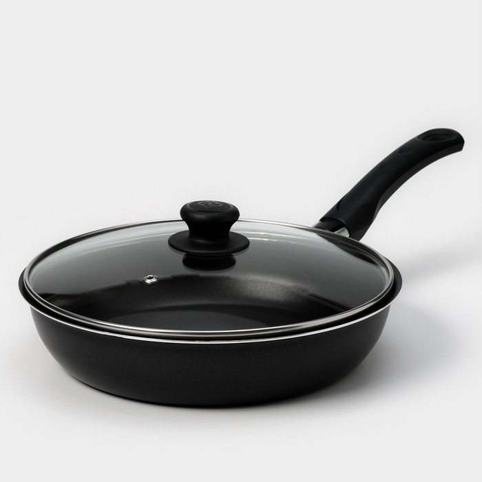 Сковорода «Классика атлас», d=24 см, пластиковая ручка, стеклянная крышка, антипригарное покрытие, цвет чёрный