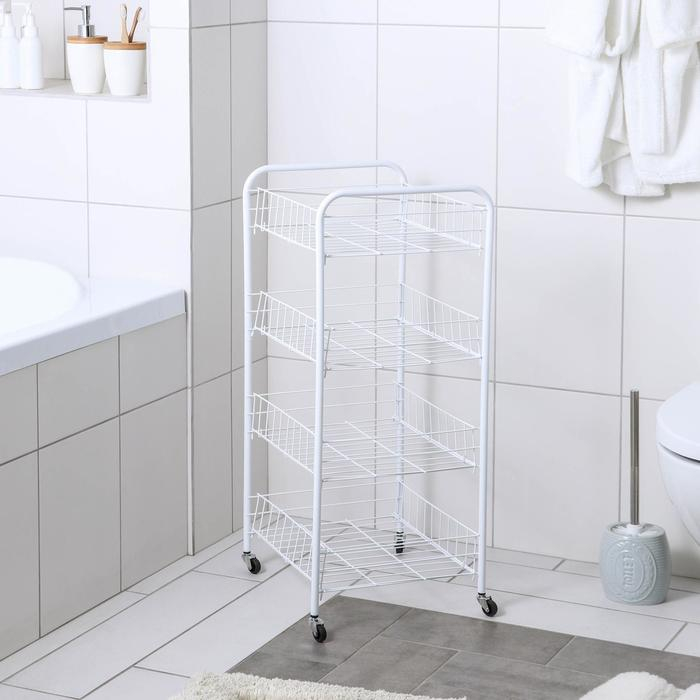 Этажерка напольная 4-х секционная Доляна, на колёсах, 31×34×77 см, цвет белый