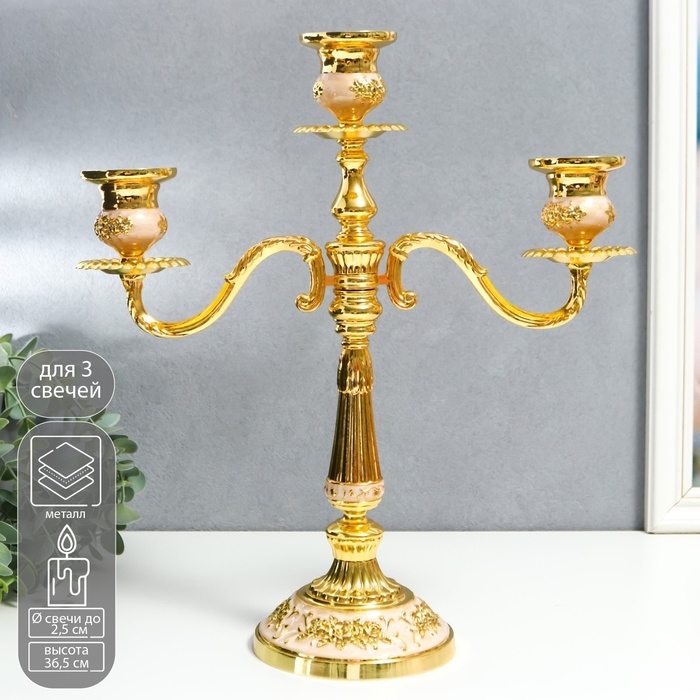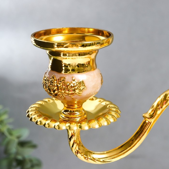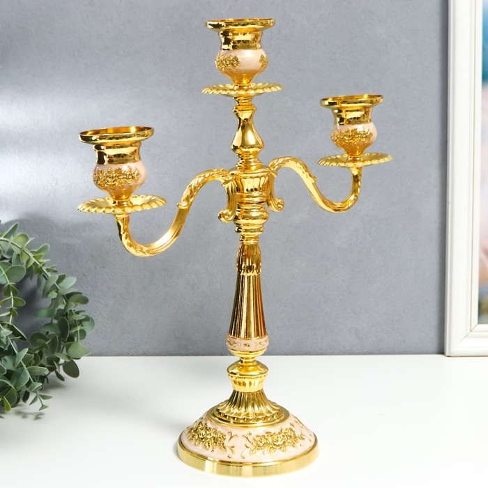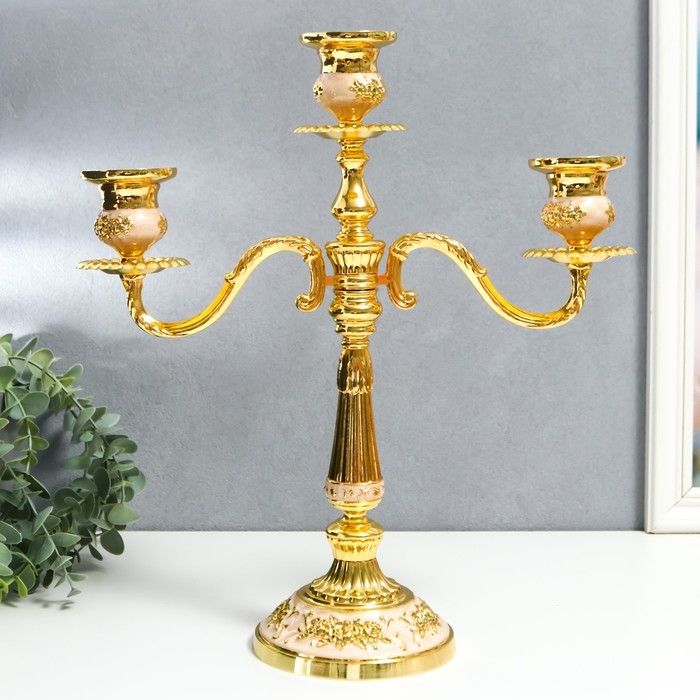Подсвечник металл на 3 свечи "Розарий" золото, белая эмаль 36,5х31,5х12 см