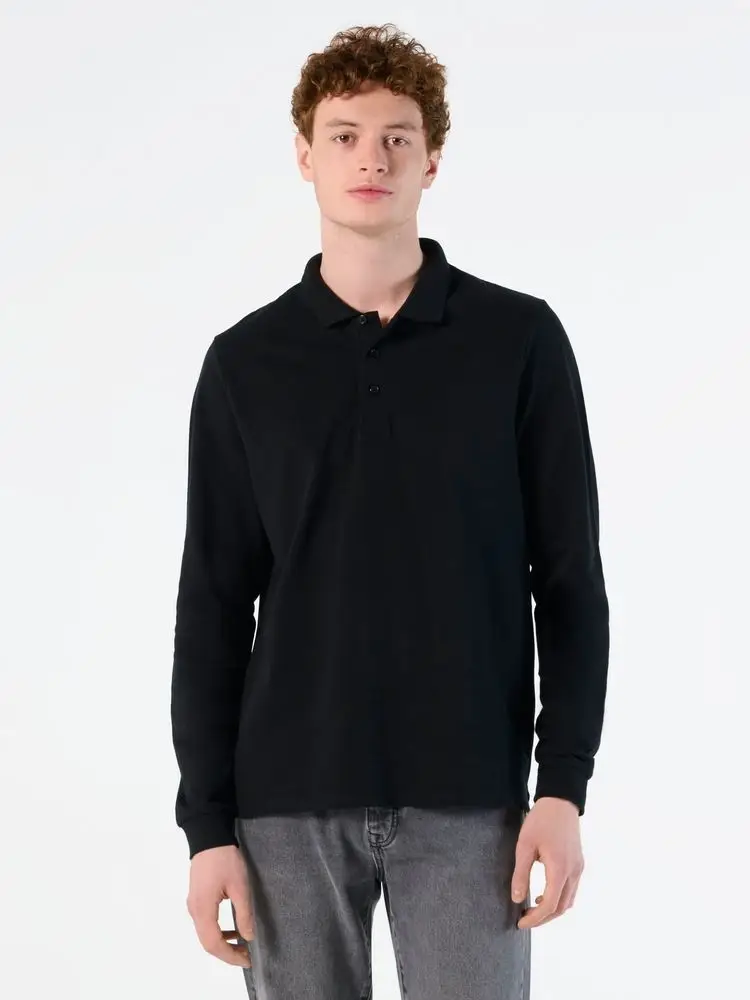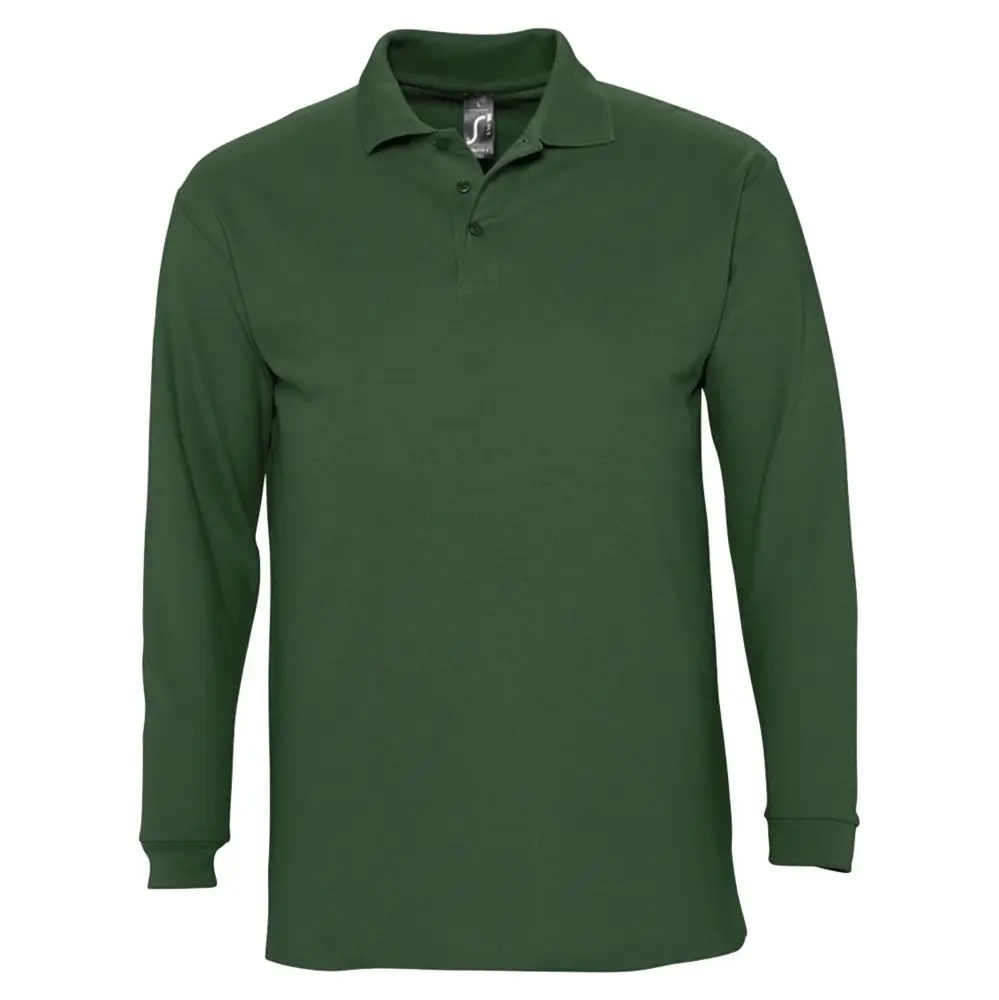 Рубашка поло мужская с длинным рукавом Winter II 210 темно-зеленая, размер M