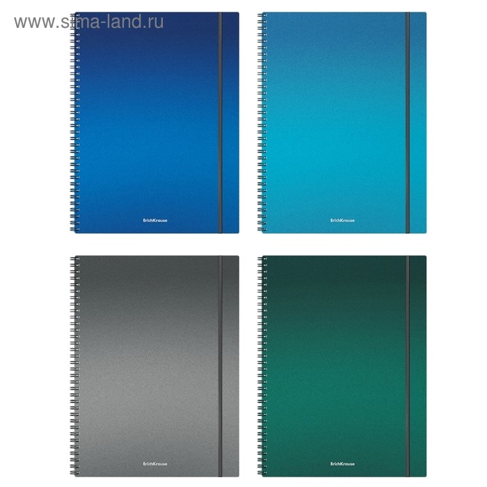 Тетрадь А4 на спирали, 80 листов в клетку, ErichKrause Ice Metallic, пластиковая обложка, на резинке, блок офсет 100% белизна, МИКС