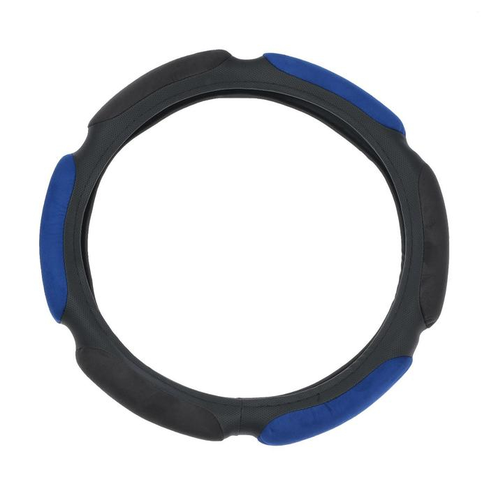 Оплетка на руль TORSO, велюр, размер 38 см, чёрно-синий