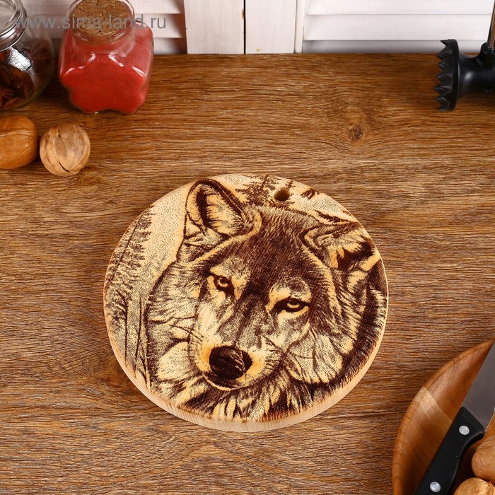 Доска из массива кедра «Волк», круглая, 18 × 18 см №240
