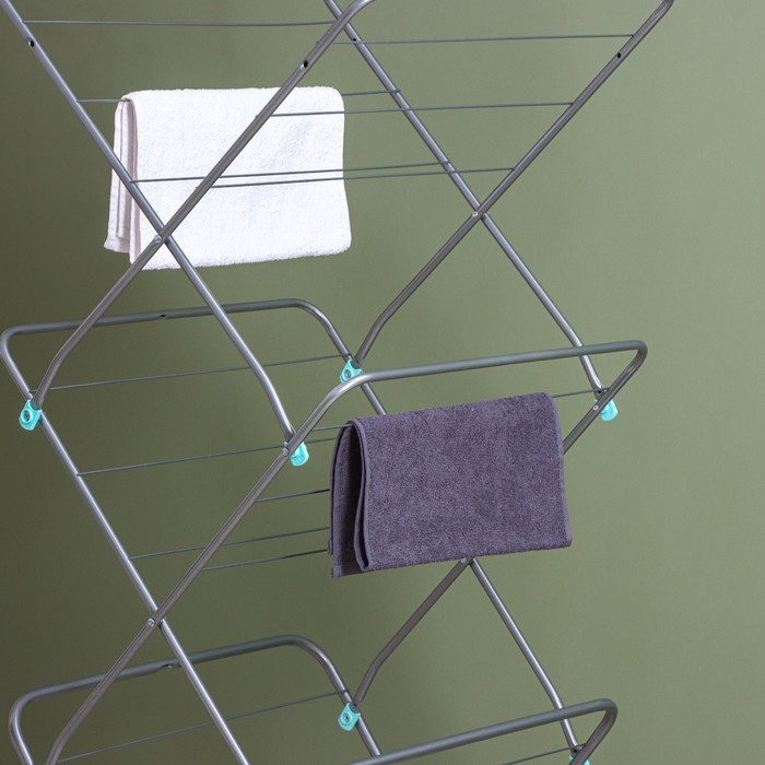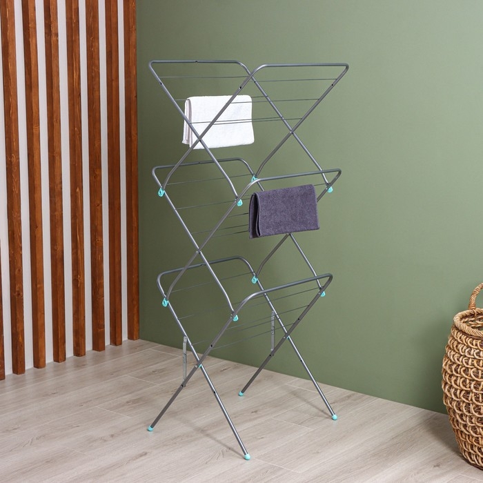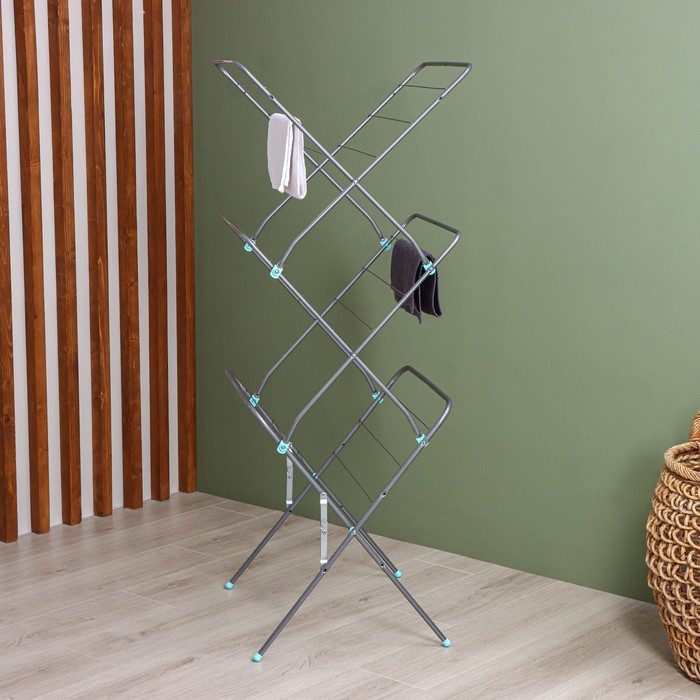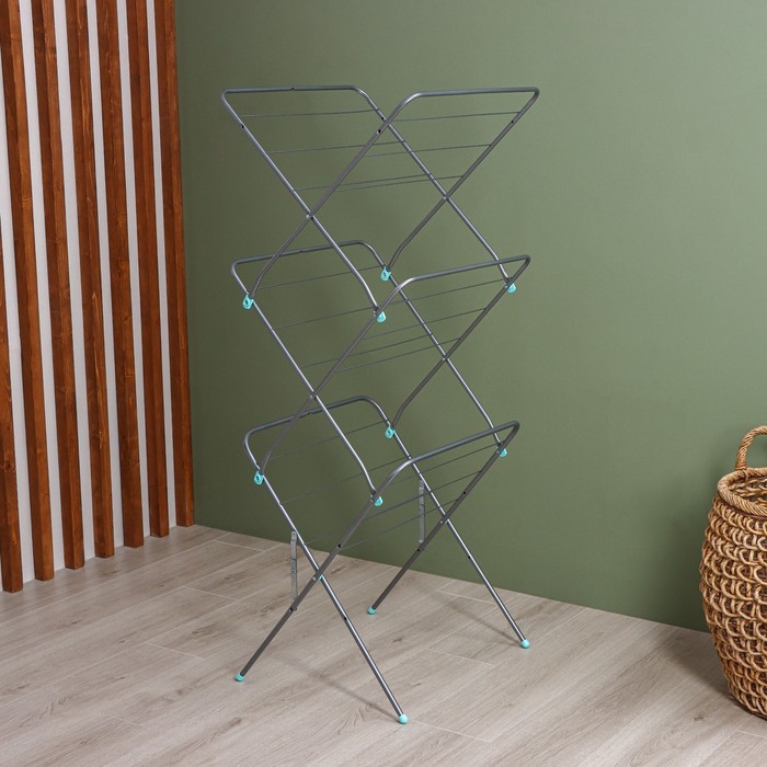 Сушилка для белья напольная трёхуровневая Доляна, 75(126)×64×170 см, рабочая длина 16 м, на колёсах