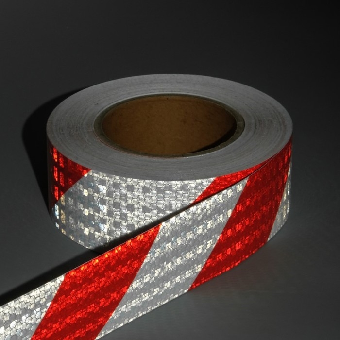 Светоотражающая лента, самоклеящаяся, бело-красная, 5 см х 25 м