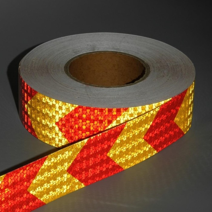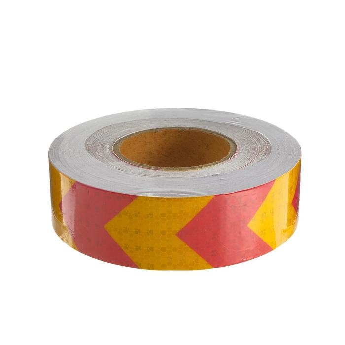 Светоотражающая лента, самоклеящаяся, желто-красная, 5 см х 45 м