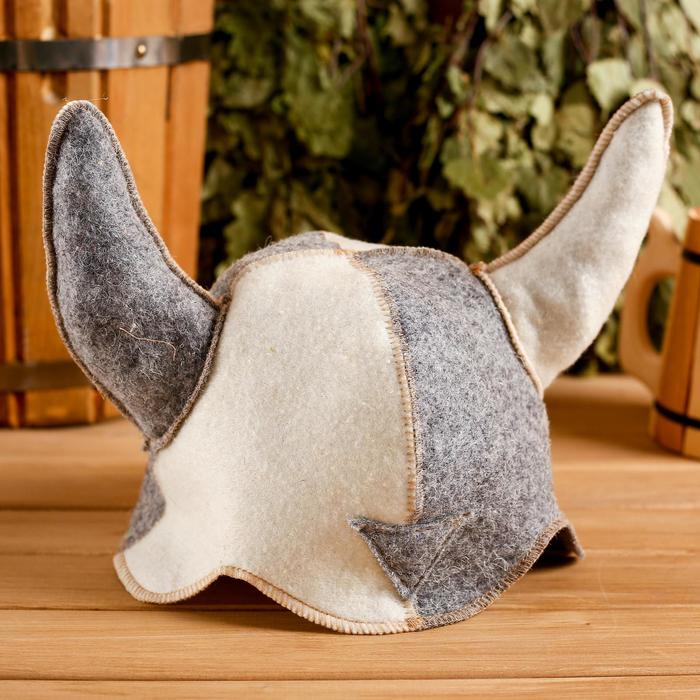 Шапка для бани "Шлем викинга" войлок, комбинированная
