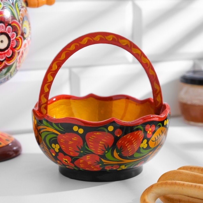 Корзинка, 12-13х12-13 см, хохлома