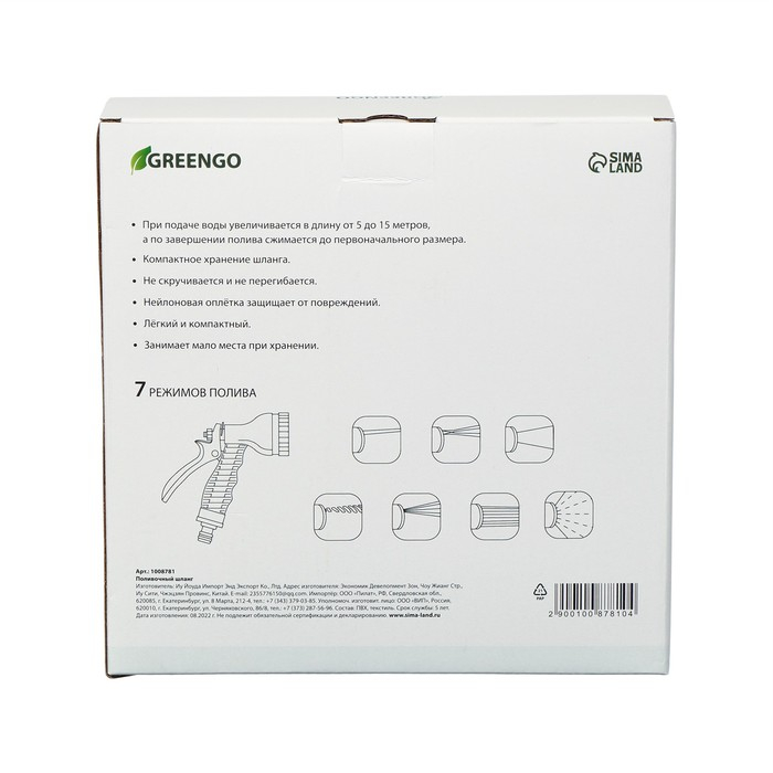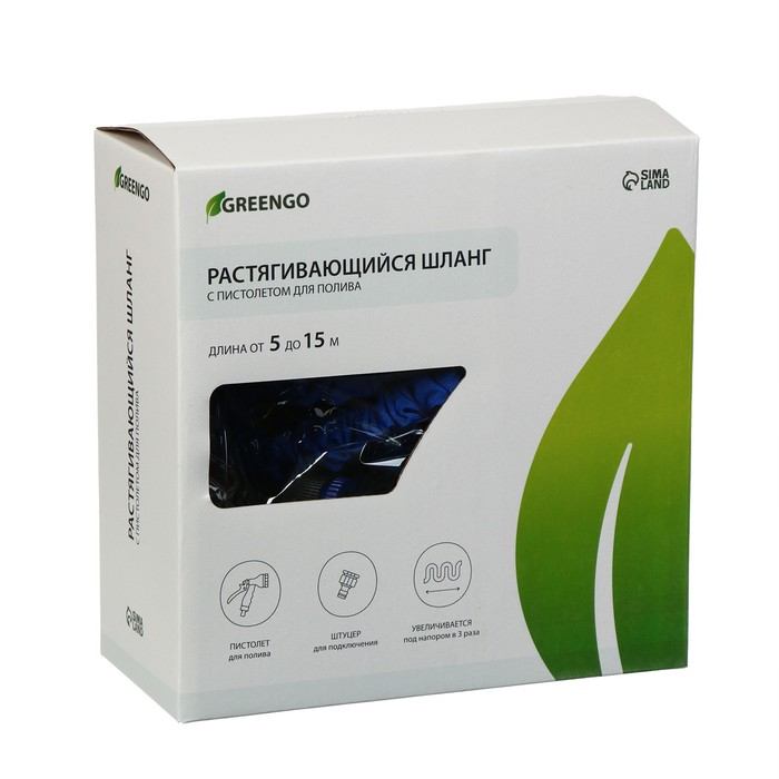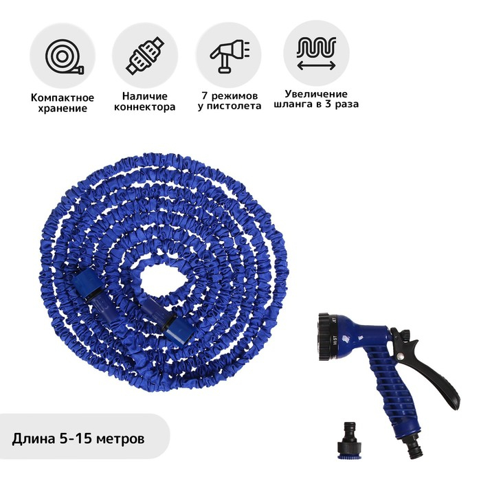 Шланг поливочный растягивающийся от 5 до 15 м, латекс, быстросъёмный, с поливочным пистолетом и штуцером, Greengo