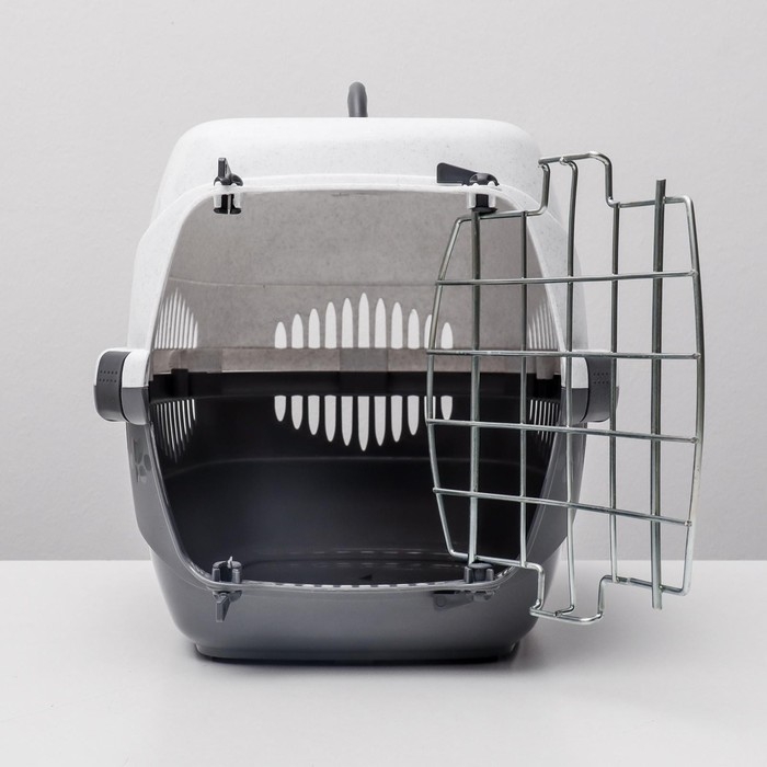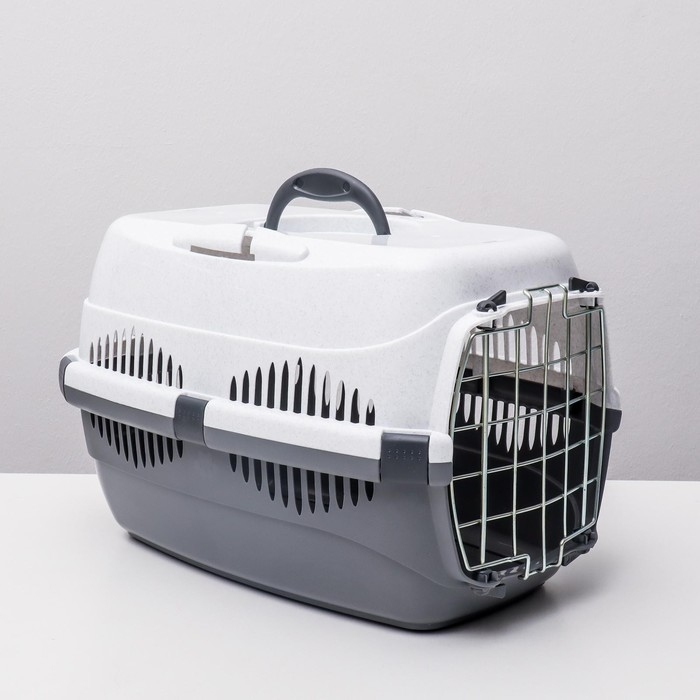 Переноска для животных до 9 кг "Пижон", металлическая дверь, 43 х 29 х 27,5 см, бело-серая