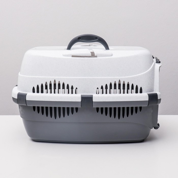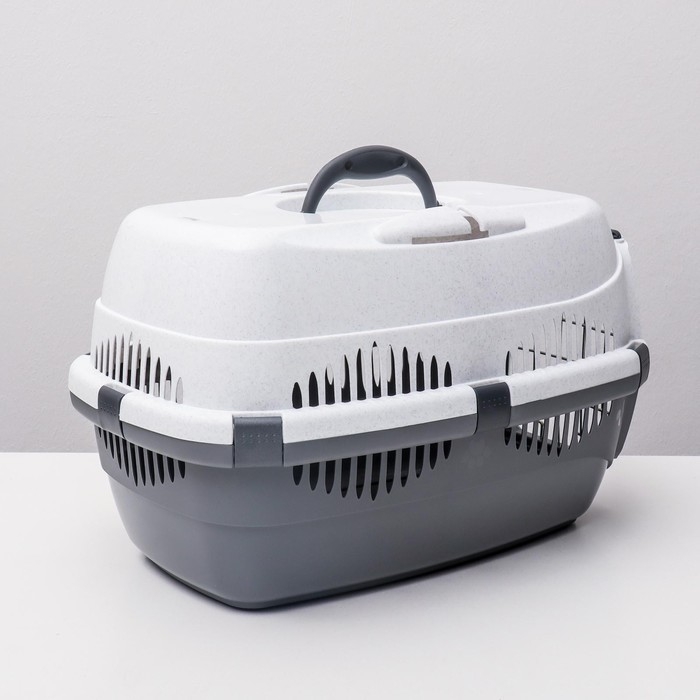 Переноска для животных с пластиковой дверью, 40 х 32 х 26, серая