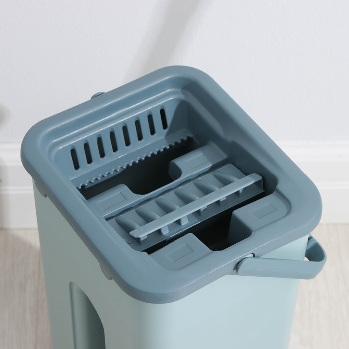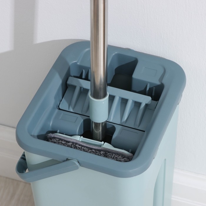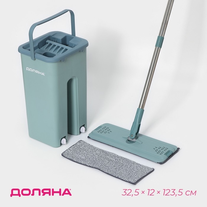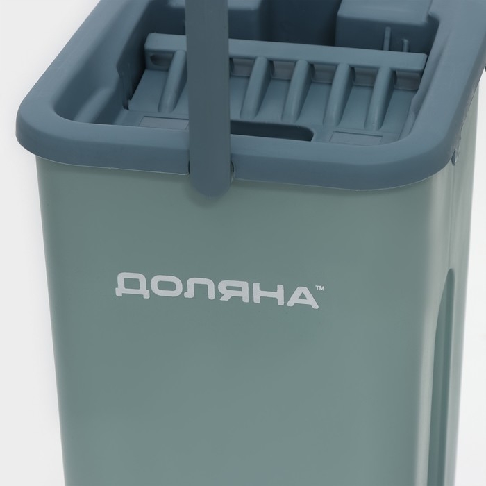 Швабра с отжимом и ведро Доляна: швабра плоская, ведро с двумя отсеками, 8 л, дополнительная насадка