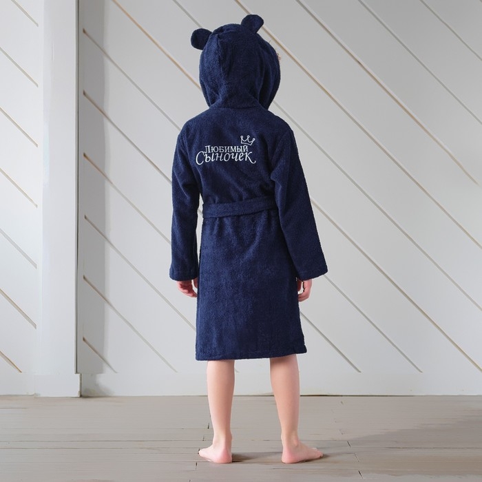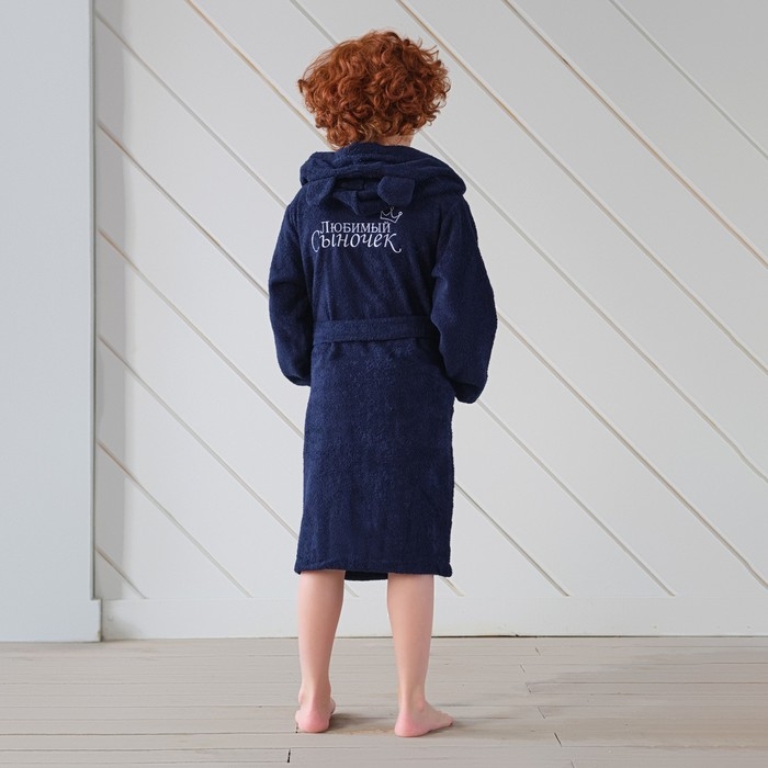 Халат махровый детский "Любимый сыночек" р-р 32 (110-116 см), синий