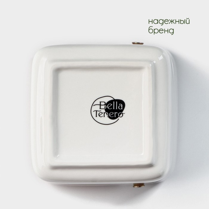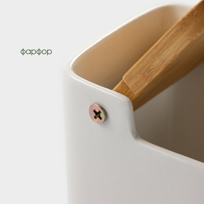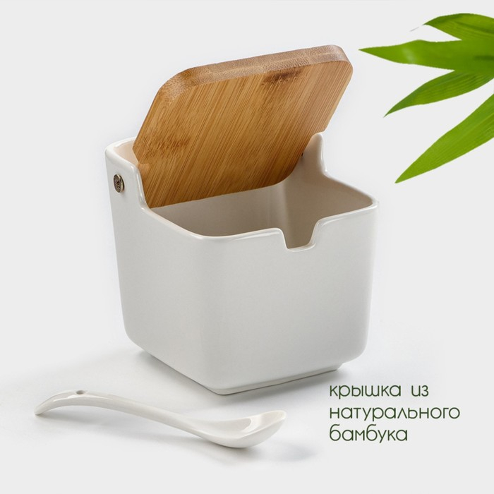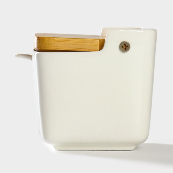 Банка для хранения сыпучих продуктов с ложкой BellaTenero, 280 мл, 9×9,5 см, с бамбуковой крышкой, фарфоровая, цвет белый