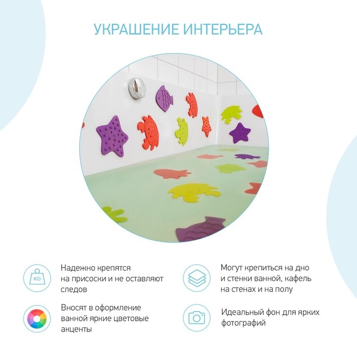 Набор антискользящих мини-ковриков для ванны 8 шт., цвет МИКС