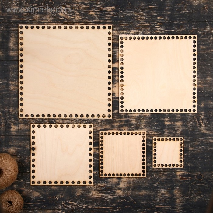 Набор заготовок для вязания "Квадрат" (5 в 1), донышко фанера 3 мм, 10/15/20/25/30 см